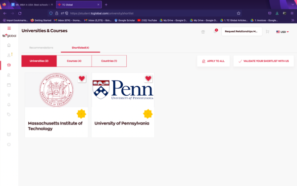 - GMAT scores/ GRE scores