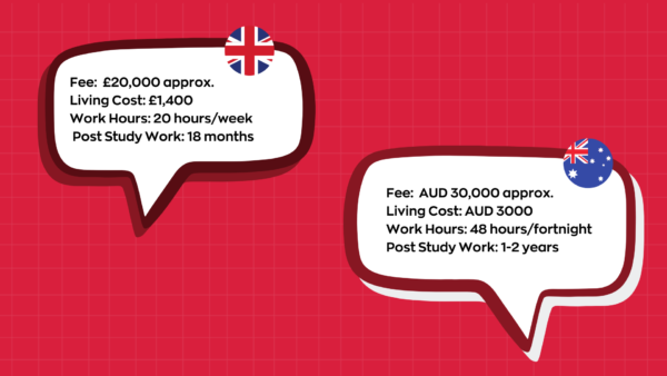 Here is the UK and Australia as international study destinations at a glance.